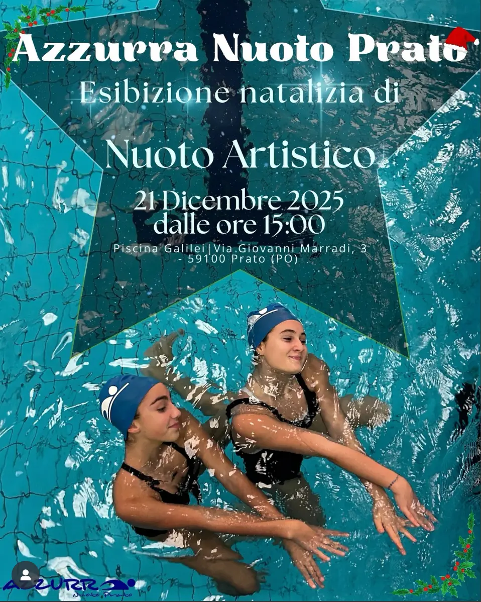 Il 21 Dicembre 2025 ci terrà l’Esibizione natalizia di tutto il settore di Nuoto Artistico dell’Azzurra Nuoto Prato, presso Piscina Viale Galilei, orario di inizio 18:00
